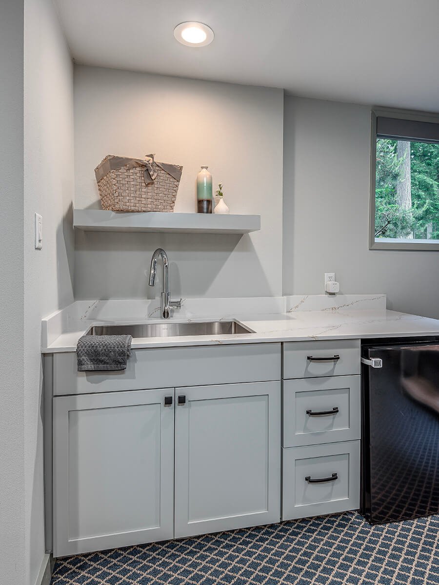 The master bath and powder room received a light refresh using some of the existing cabinets and tile, and the basement laundry and guest baths were renovated top to bottom.